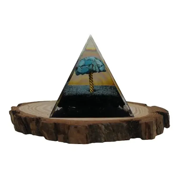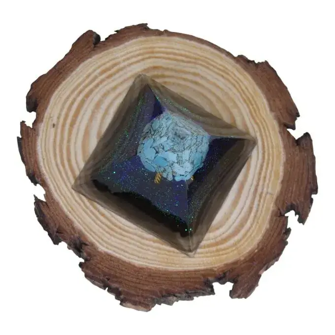 Pyramide Orgonite en Grès Bleu & Turquoise – Harmonie Énergétique & Inspiration Créative
