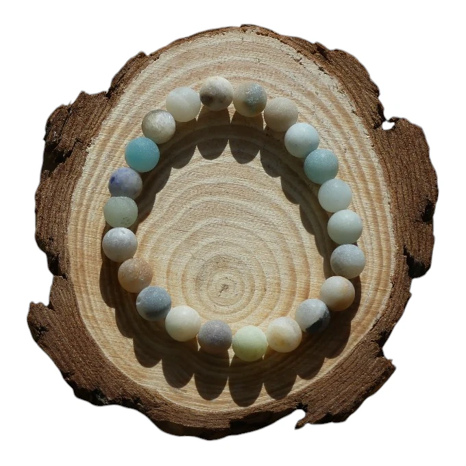 Ce bracelet élégant est composé de perles d’amazonite naturelle de 8 mm. Chaque perle est unique et arbore des nuances aquatiques de vert-bleu caractéristiques, évoquant les eaux calmes des lagons tropicaux. Pierre surnommée « Pierre de la Vérité », son énergie apaisante et équilibrante en fait un accessoire à la fois esthétique et spirituel, parfait pour ceux qui cherchent l’harmonie entre cœur et parole.
