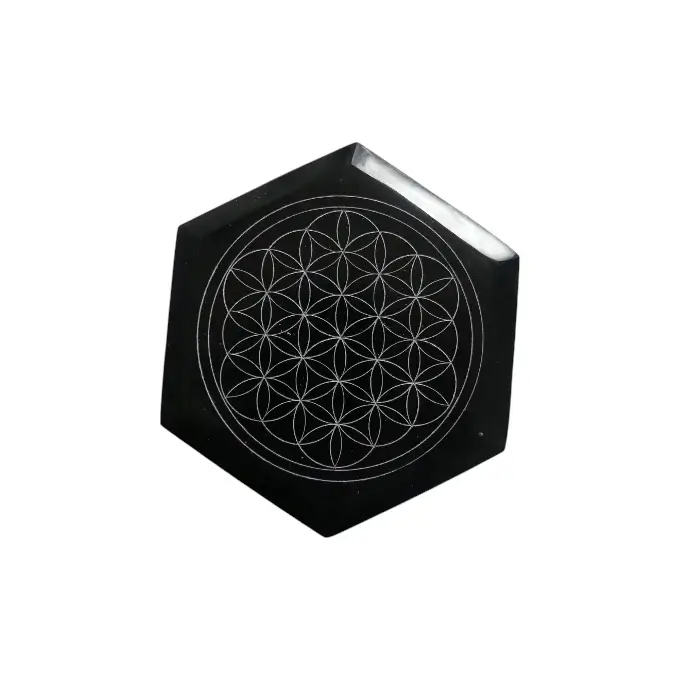Utilisez cette boîte à bijoux hexagonale en pierre pour ranger vos bijoux, pierres précieuses et outils de divination. Son couvercle orné de la Fleur de Vie et ses sculptures variées sur les flancs en font une pièce exceptionnelle.
