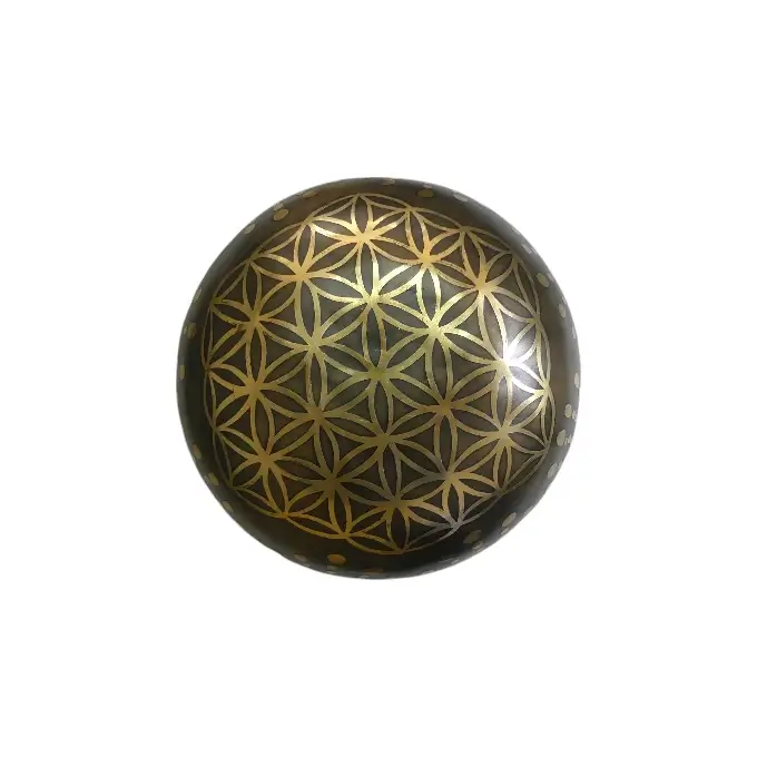 Ce bol chantant est forgé en Inde selon les traditions séculaires. Il porte le symbole universel de la Fleur de Vie, représentant l’interconnexion de toute existence. Son chant envoûtant :