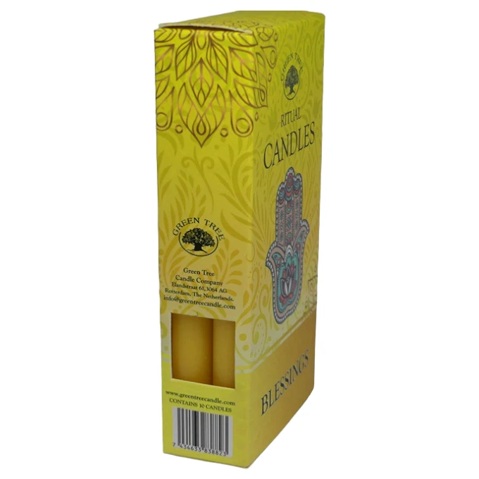 Illuminez chaque instant avec ce lot de 10 bougies jaunes. Fabriqués en Inde avec des cires haut de gamme. Ces bougies sont conçues pour les rituels de protection et de purification.