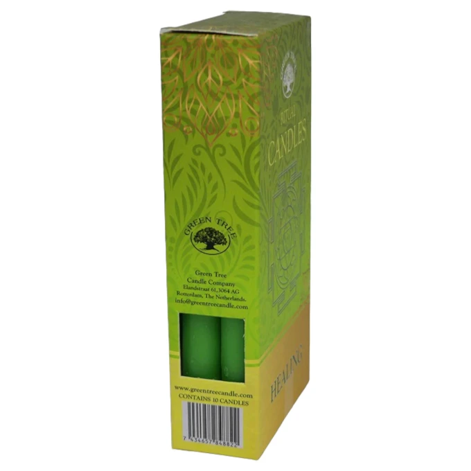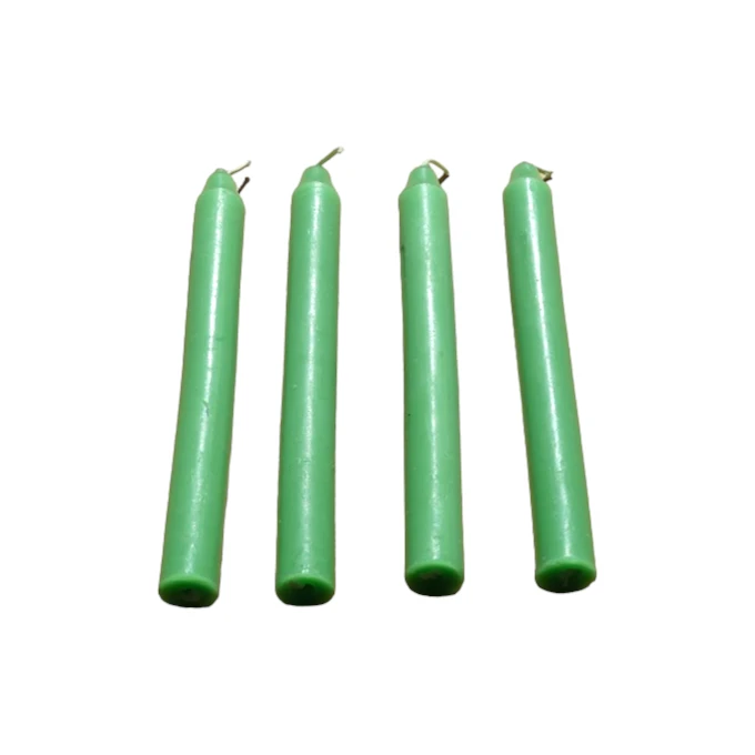 Illuminez chaque instant avec ce lot de 10 bougies vertes . Fabriqués en Inde avec des cires haut de gamme. Ces bougies sont conçues pour les rituels de protection et de purification.