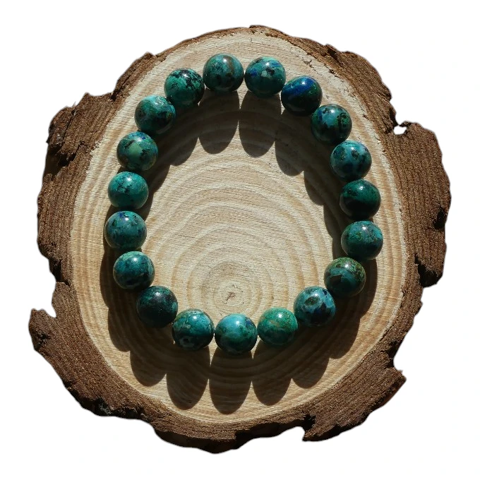 Découvrez la beauté naturelle de la Chrysocolle avec ce bracelet de perles 10 mm