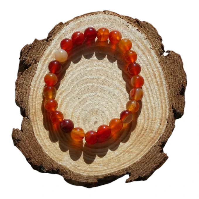 Découvrez la beauté naturelle de Cornaline Rubanée avec ce bracelet de perles 8 mm