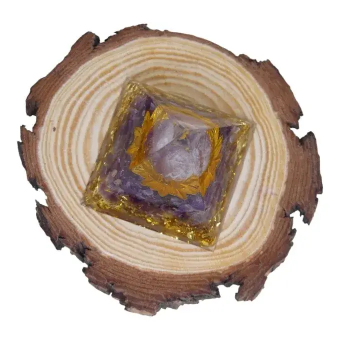Pyramide Orgonite Améthyste & Fleur de Lotus – Pureté Spirituelle & Éveil Intérieur