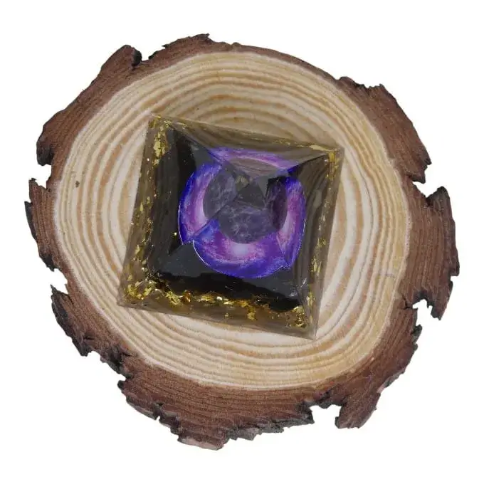 Pyramide Orgonite Améthyste & Obsidienne noire – Sagesse et Protection