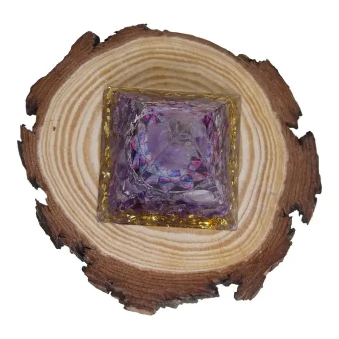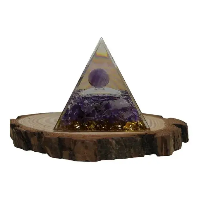 Découvrez notre Pyramide Orgonite de 5 cm en Améthyste, magnifiée par une délicate rosace florale en son cœur. Cette création unique allie :