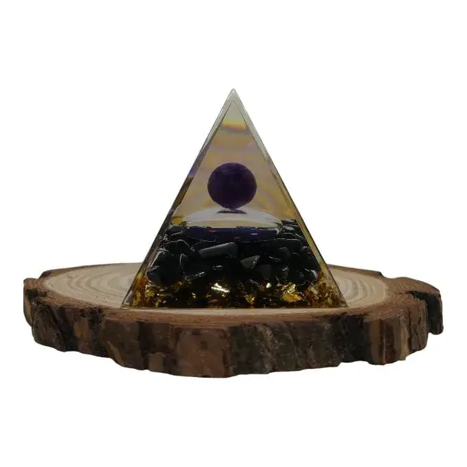 Pyramide Orgonite Améthyste & Obsidienne – Équilibre Parfait & Protection Absolue