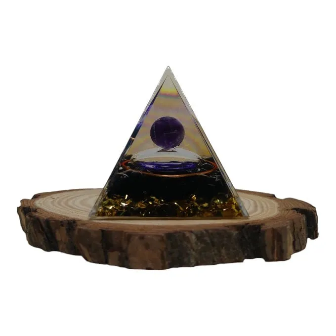 Pyramide Orgonite en Améthyste & Obsidienne – Équilibre Énergétique & Protection Subtile